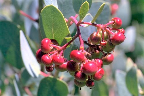 There are 62 manzanita species native to California. You will learn to distinguish between two common manzanitas that you find in the San Diego mountain chaparral. We will talk about which parts of the manzanita are edible and the various ways they have been used in the past. Both the green and ripe red berries are edible and taste like apples. In fact, manzanita is a Spanish word that means little apple. We will work in two teams to make and bake two different manzanita cracker recipes and also make a batch of ricotta cheese and a dry foraged herbal seasoning to sprinkle on top.