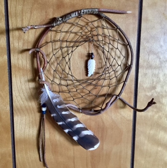According to some Native American legends, the Dream Catcher is hung in the lodge near the sleeping area. Its purpose is to catch all dreams, good or bad. The bad dreams get caught in the web and burned-off by the first morning light. The good dreams are also caught but know their way to the hole in the center and filter their way down into the feathers where they are held to be dreamed for another night.