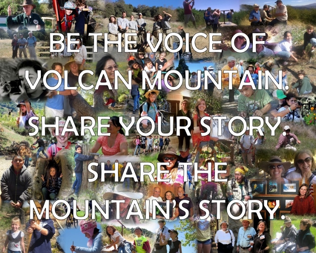What is YOUR Volcan Mountain story? How do you connect with Volcan Mountain? What does Volcan Mountain mean to you?